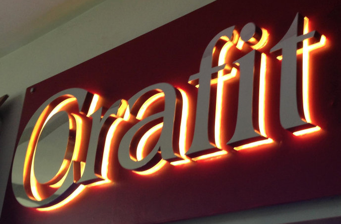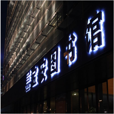 ?背光字俗稱背打光字,就是字背面打光,光源安裝在不銹鋼字背面字殼內,光打在墻面上的一種發(fā)光字(如圖),背打光字工藝精致,高等雅制,根據不同的做法可以安裝在室外門頭或者室內形象墻上等。
